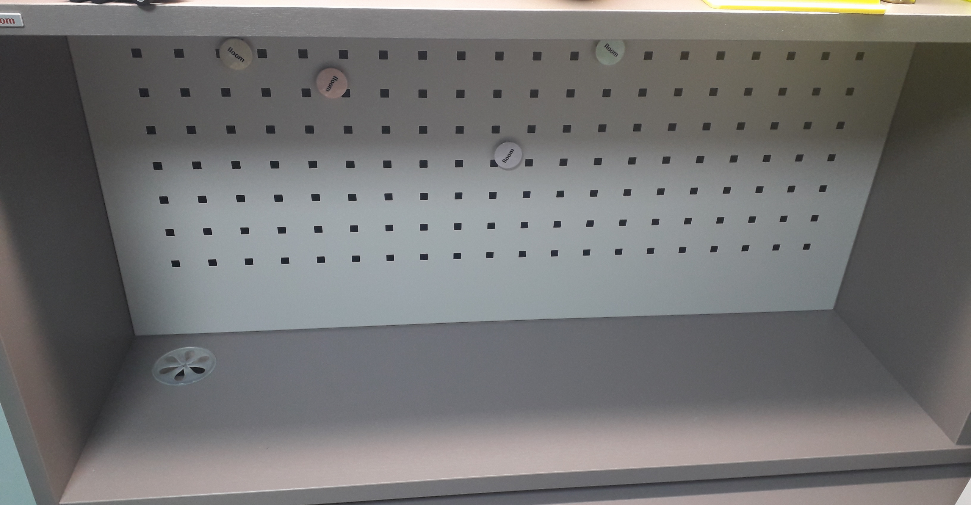 일룸 책상 전면은 타공판으로되어 있는데 구멍이 네모 모양으로 이루어져 있습니다.