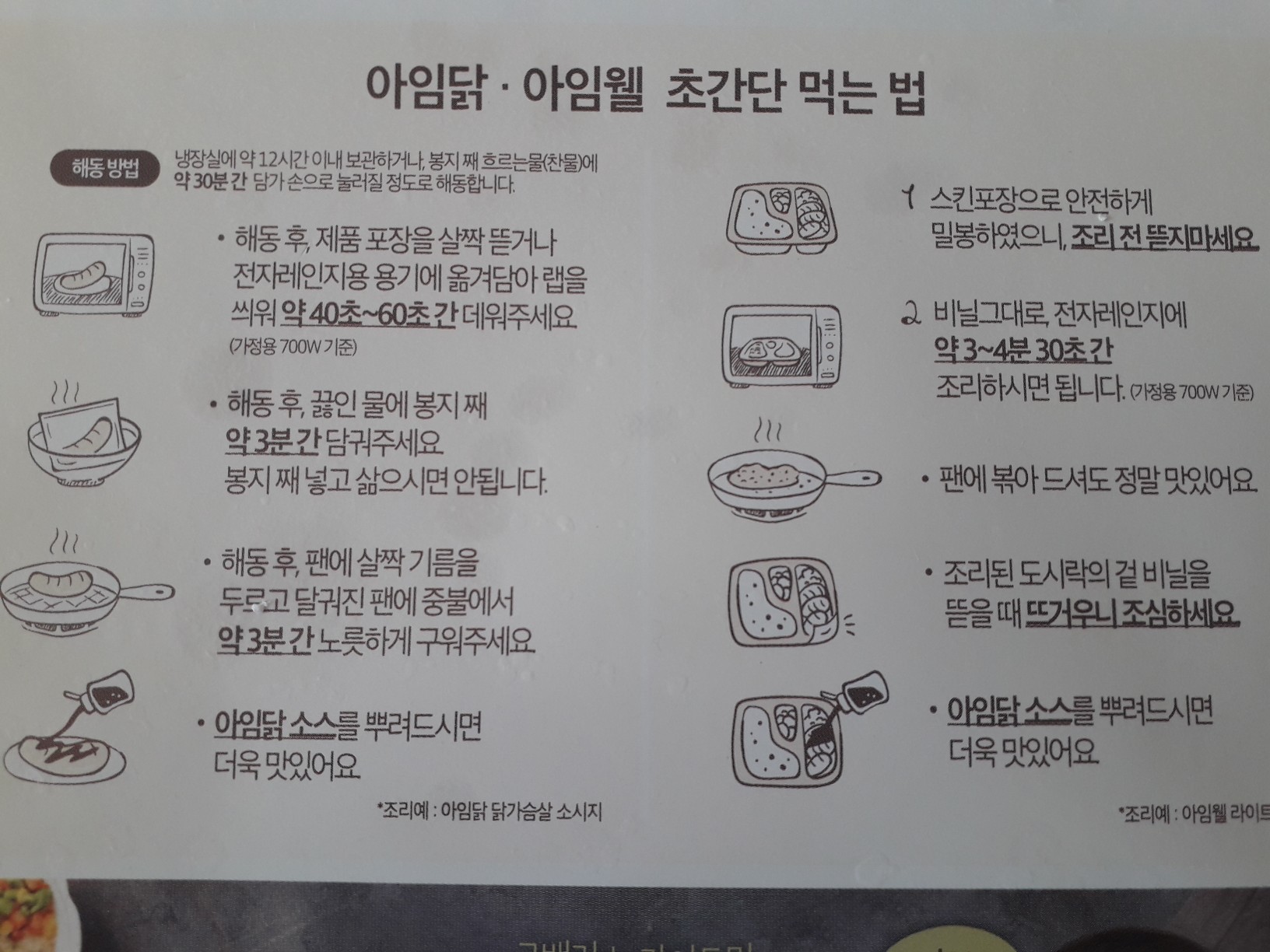 배송된 박스 안에 위와 같은 아임닭 초간단 먹는 법이 자세히 안내되어 있었습니다