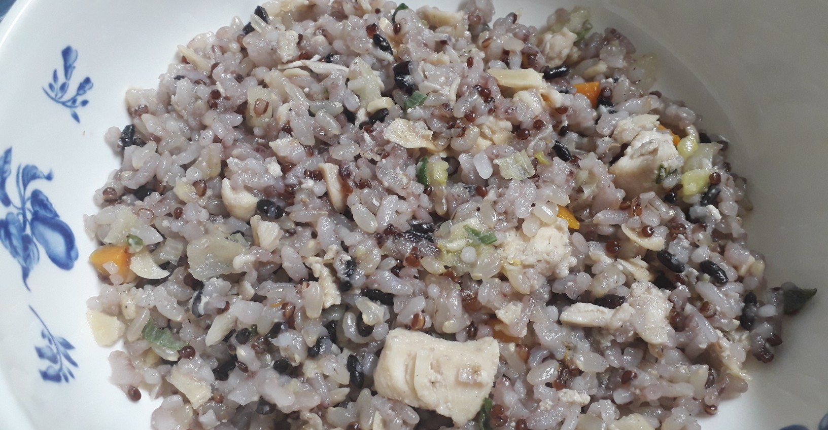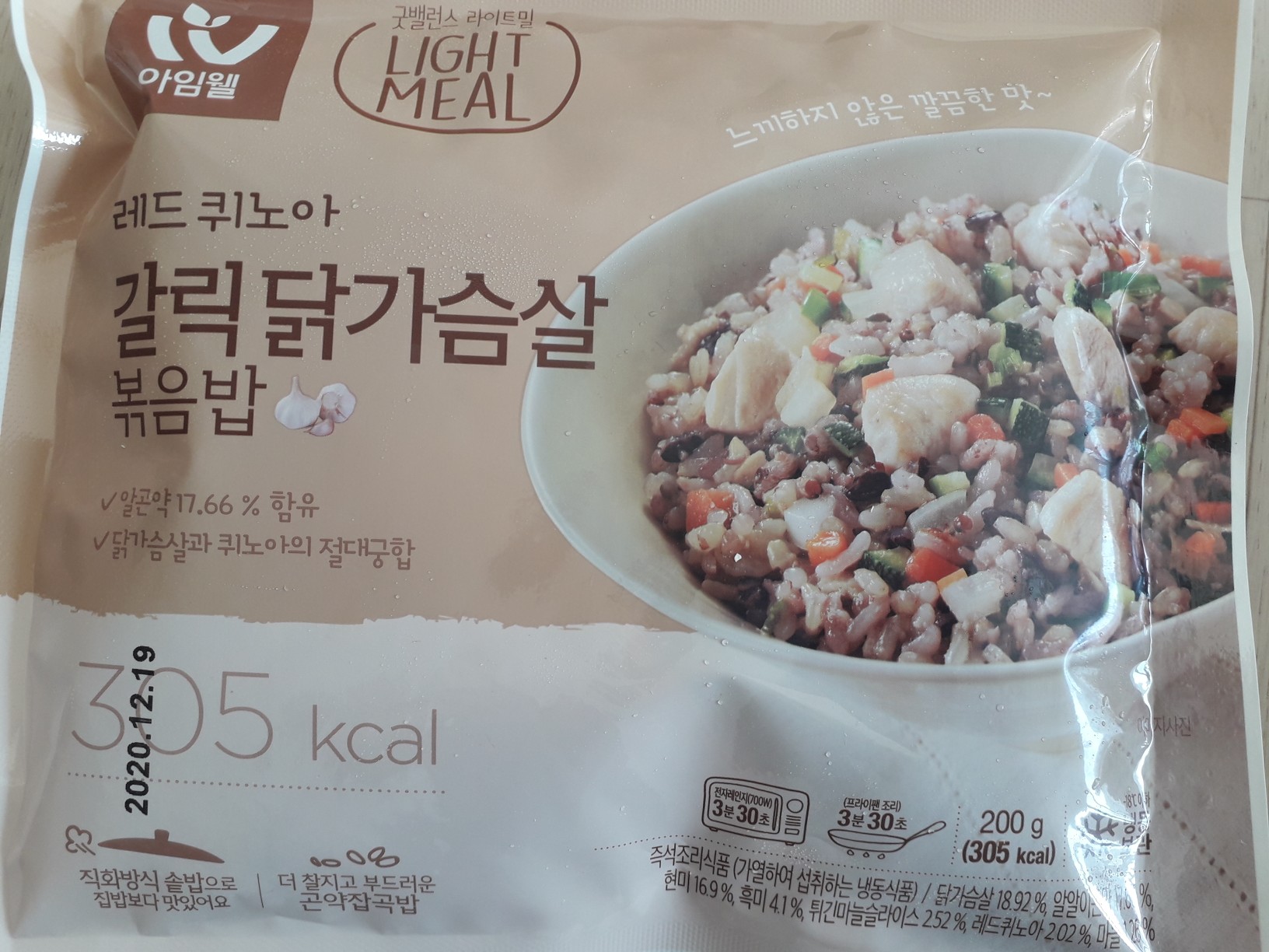 다음으로는 아임닭 레드퀴노아 갈릭닭가슴살 볶음밥을 데워 보았습니다. 알곤약이 17.66%나 들어 있어서 305kcal 정도의 낮은 칼로리 밖에 되지 않았습니다.