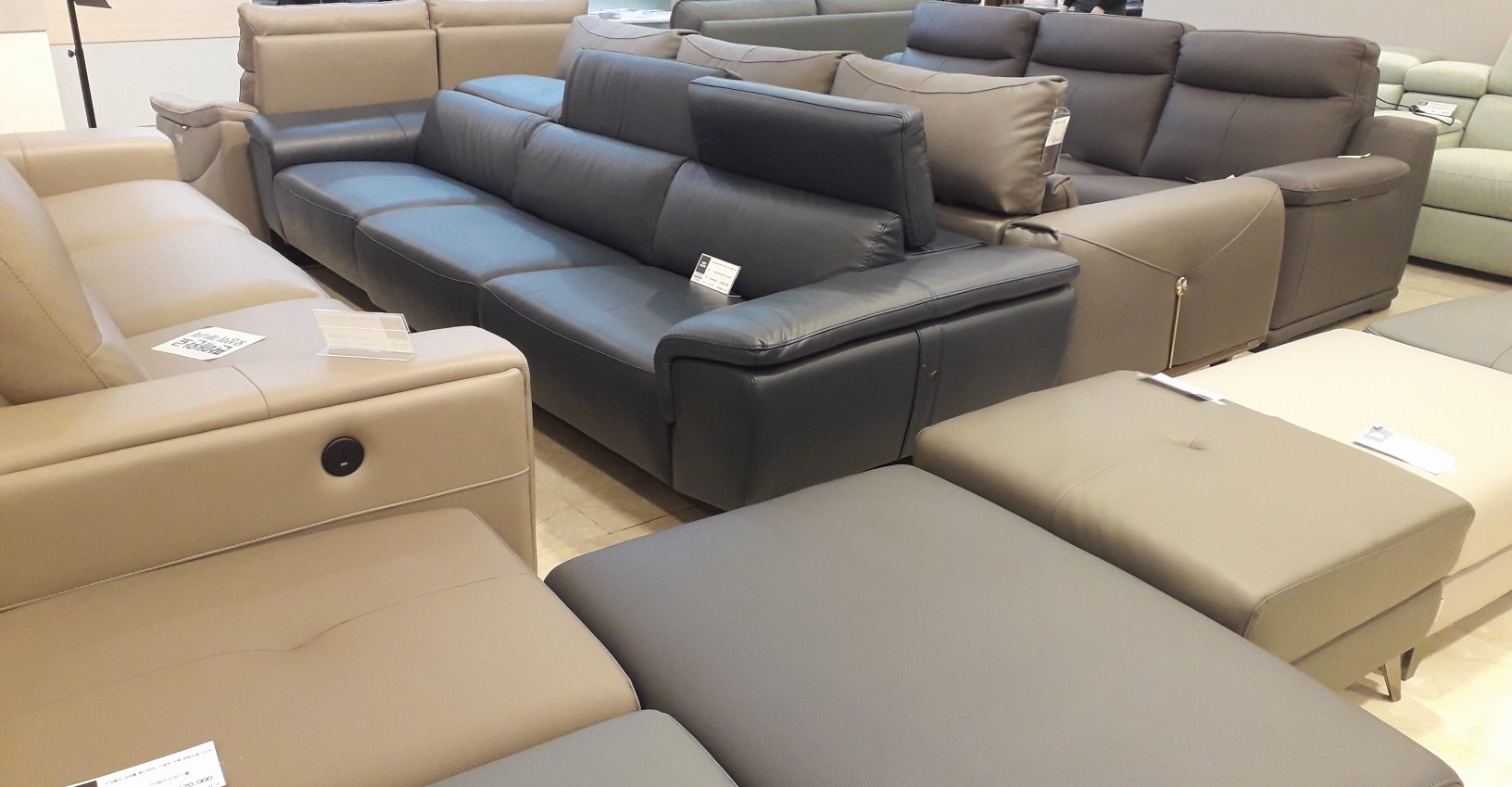 에몬스 가구 본사 전시장을 쭉 둘러보니 요즘 유행하는 침대 디자인이 어떤것인지 대충 감이 오더군요. 위의 사진 처럼 침대 헤드가 쇼파 처럼 가죽 쿠션으로 되어 있는것이 대세였습니다.