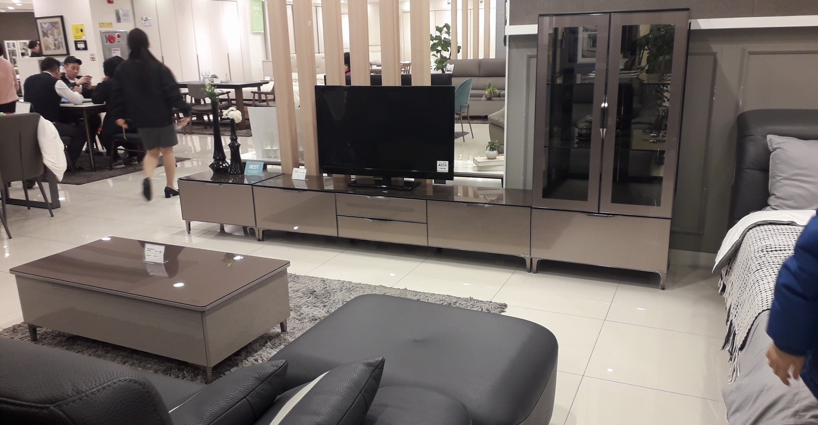 옷장과 거실장들도 쭉 둘러 보니 위와 같은 실버톤의 고급스런 광택의 가구가 유행인듯이 보였습니다.