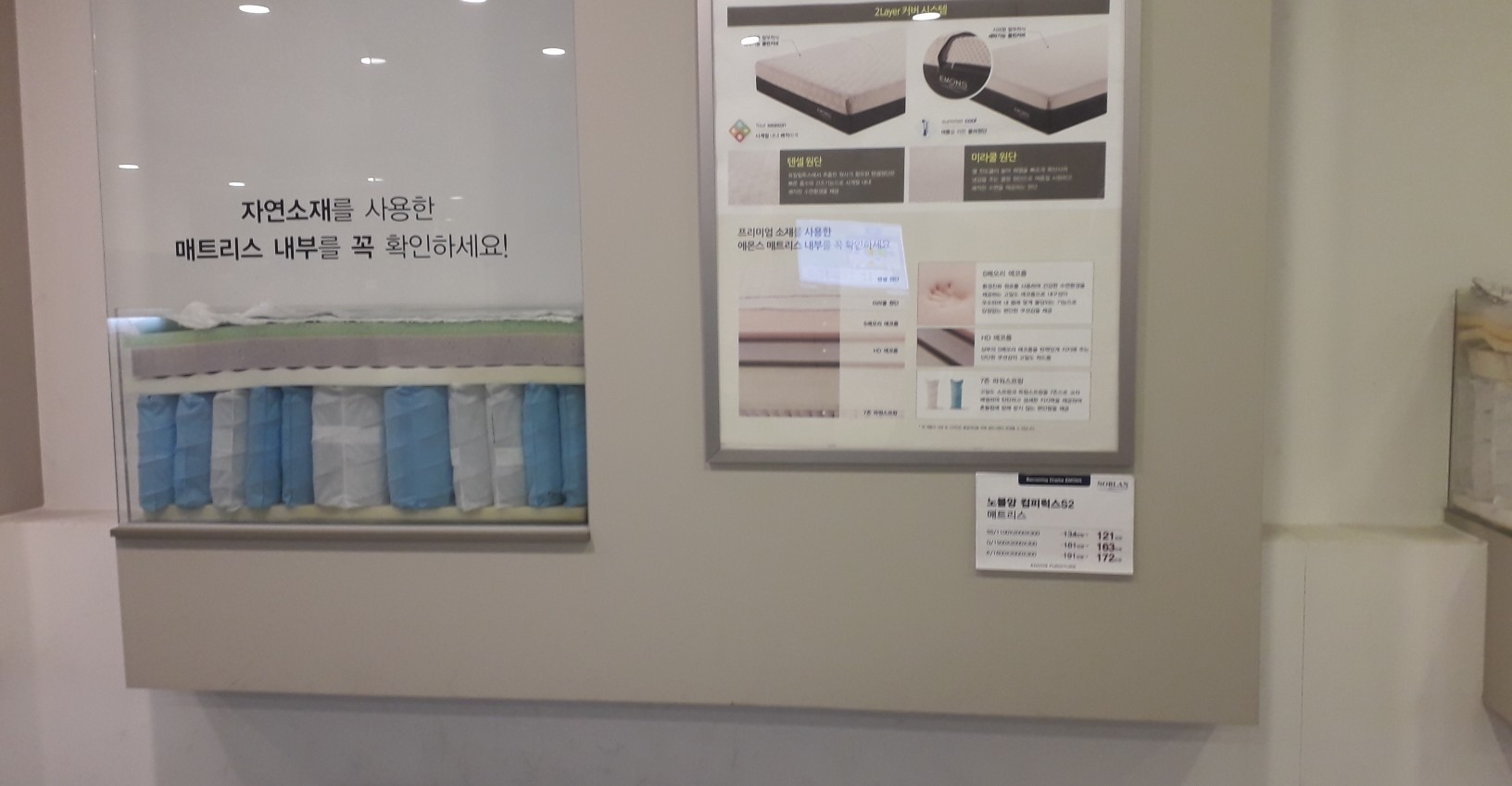 매트리스 내부를 투명하게 볼 수 있고, 가격도 잘 나와 있어서 비교하기도 편했고 느낌이나 소재도 비교하기 쉬웠습니다.