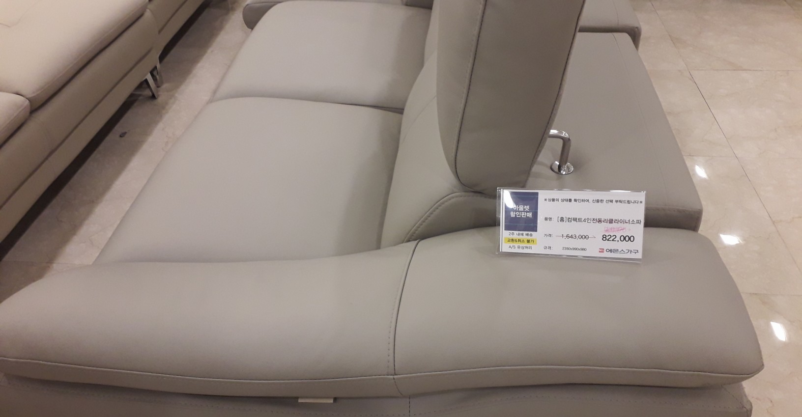 에몬스 가구 본사 전시장 5층에는 아울렛 제품과 온라인 전용 제품, 스크래치 상품과 전시품들을 싸게 살 수 있는 곳이었습니다. 위의 사진 처럼 창고 같이 여려 제품을 늘여 놓았는데 가격이 원가의 50% 이상이나 싸게 살 수 있는 제품도 있어서 확실히 가격 메리트가 있었습니다.