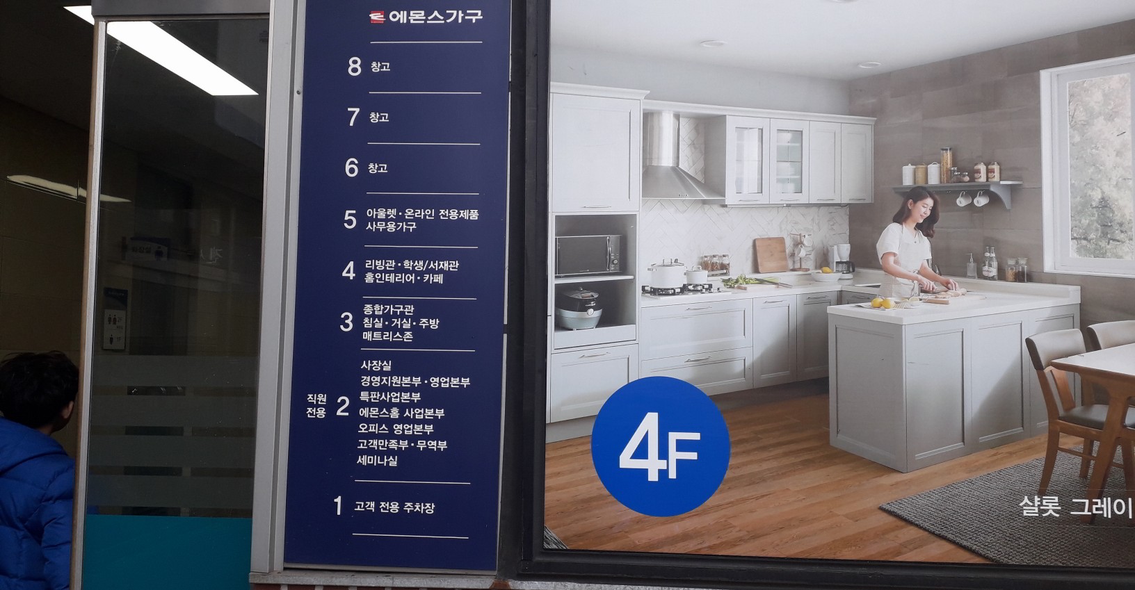 에몬스 가구 본사 전시장은 8층 건물 인데요, 1층은 주차장이고 2층은 사무실, 3층 부터 5층이 가구 전시장 입니다.