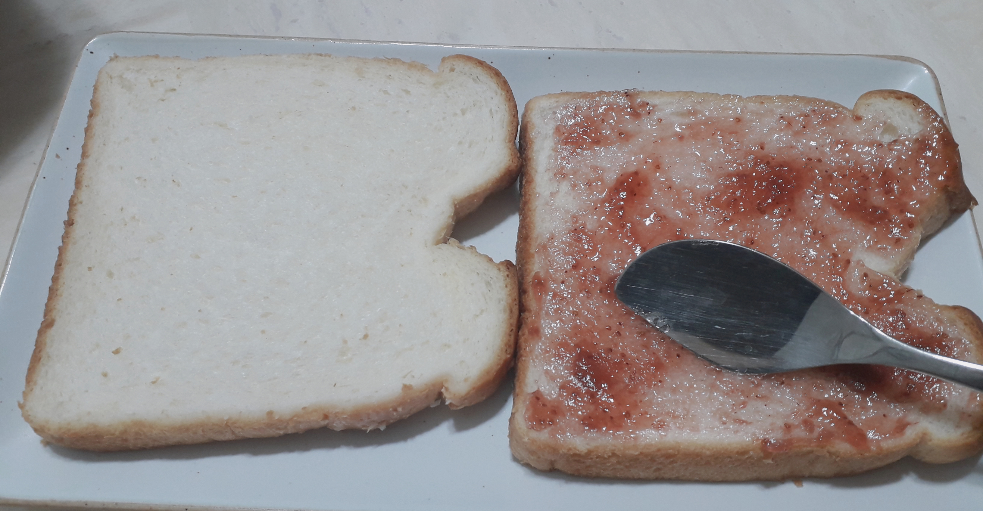 -재료 : 식빵 2개, 딸기쨈, 뮌스터 치즈 2장, 케찹