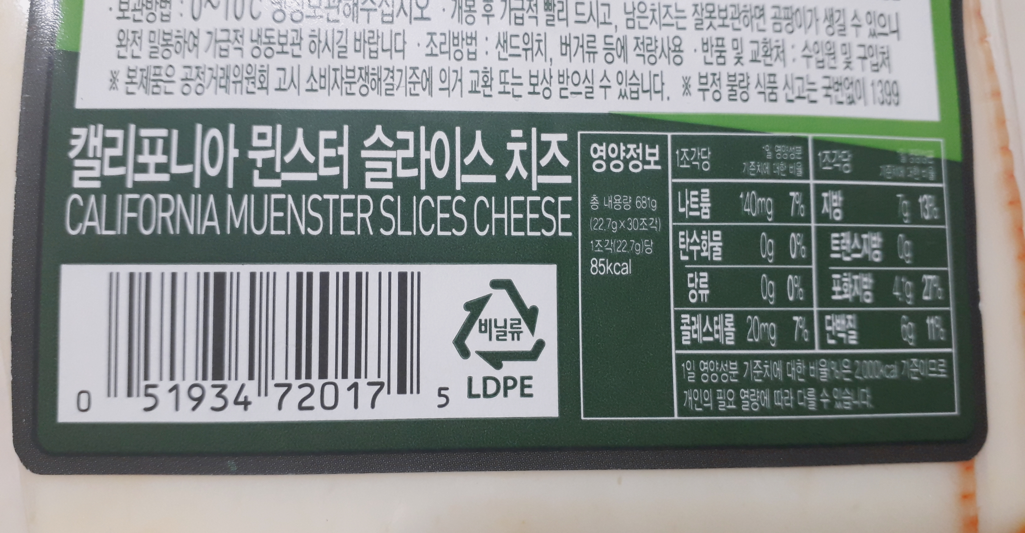 풀 네임은 '캘리포니아 뮌스터 슬라이스 치즈'입니다.